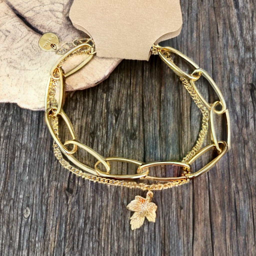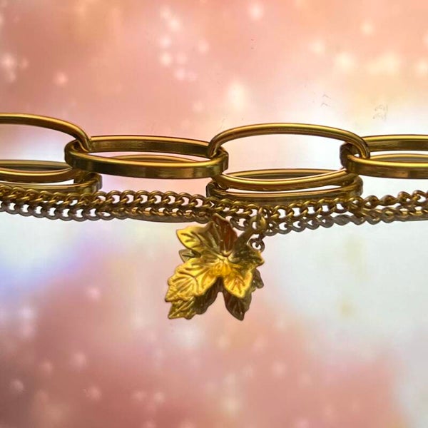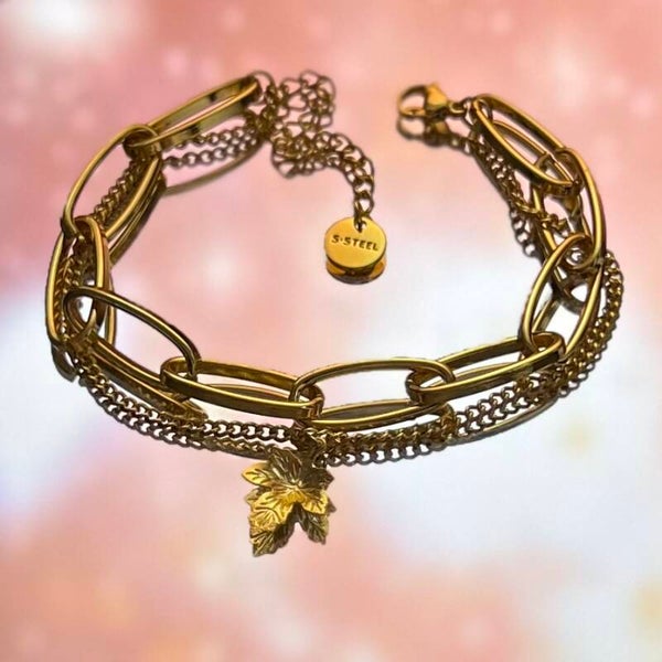 2-delige armband esdoornblad- bedeltje. 1 grovere schakel en 1 fijne armband.
