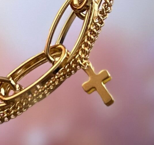 2-delige armband. Bedeltjes van kruisje en steentjes.