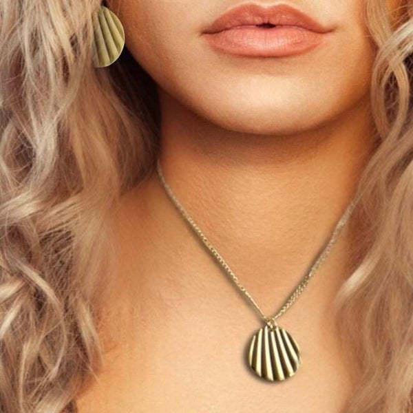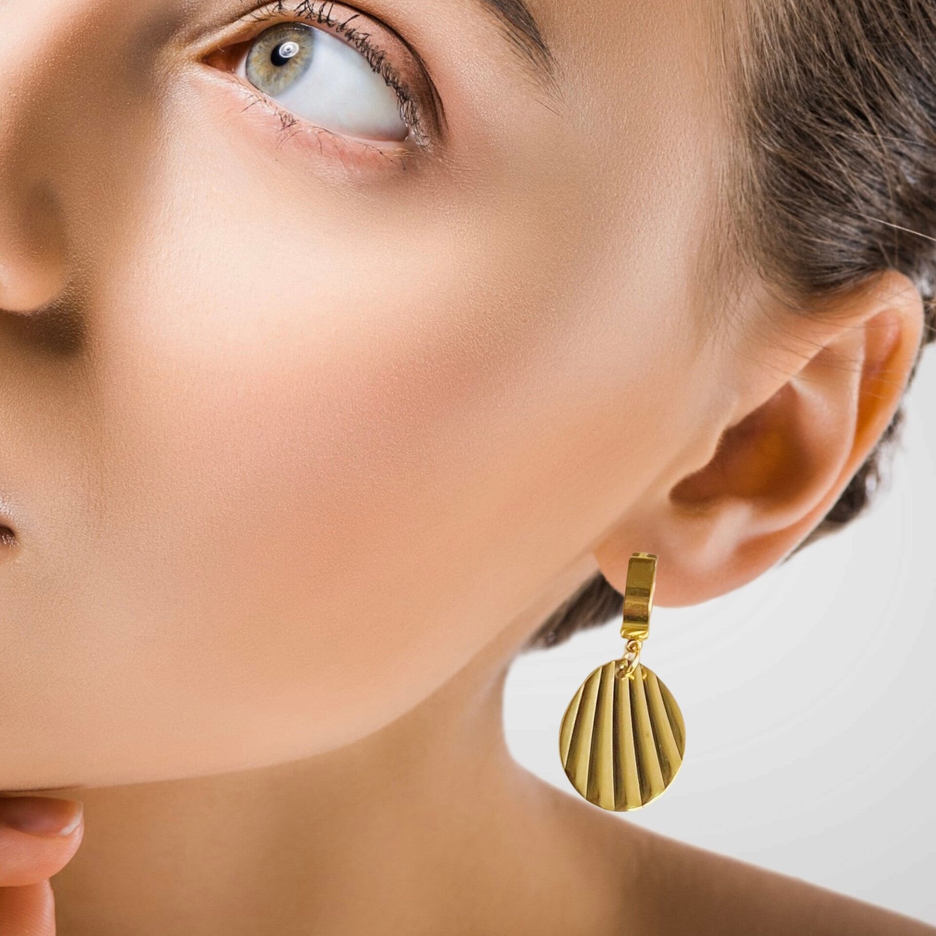 Ronde massieve rvs oorsteker met schelpvormige hanger. Lengte schelp is 2 cm. Totale lengte is 4 cm.